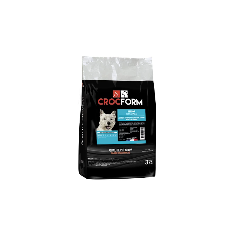 Ces croquettes d’origine française sont proposées par la marque CROCFORM dans sa gamme Premium comme un aliment complet pour chiens séniors de petites races. Hautement digestible et croquante, la nourriture SÉNIOR au bon goût de canard conviendra parfaitement comme alimentation quotidienne pour votre compagnon canin.