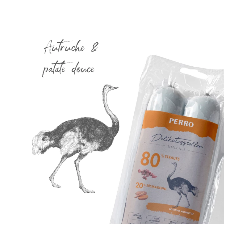 La saucisse de viande au bon goĂ»t d’autruche est une friandise complète pour chien adulte. FabriquĂ©e Ă partir d’un processus de fourrage Ă froid, cette collation naturellement nutritive et savoureuse est idĂ©ale pour les intolĂ©rances alimentaires, les rĂ©gimes d’exclusion et les allergies. FormulĂ©e sans gluten et sans cĂ©rĂ©ales, sa recette Ă©quilibrĂ©e contient de la patate douce comme seule source de glucide (20%) et de l’autruche comme source monoprotĂ©ique (80%). Faible en calorie et en amidon, la patate douce est reconnue pour sa digestibilitĂ© et son apport en glucides complexes, fibres, minĂ©raux et vitamines.
