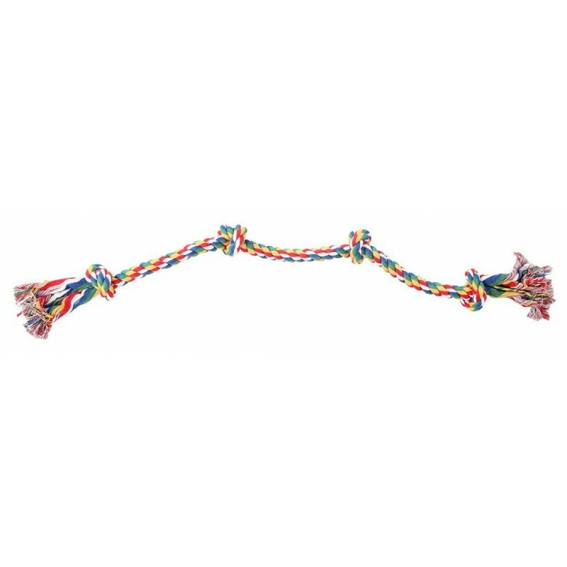 Ce produit est proposé par la marque Pawise comme un jouet à mâcher à quatre nœuds pour chien. Fabriqué à partir de corde résistante et non toxique, cet accessoire de divertissement et de santé participe à l’entretien des dents et à l’hygiène bucco-dentaire de votre compagnon tout en l’amusant ! Partagez un moment de complicité en jouant au tir à la corde avec lui. La texture de la corde participe au massage des dents et des gencives et permet d’éviter les problèmes de tartre chez le chien.