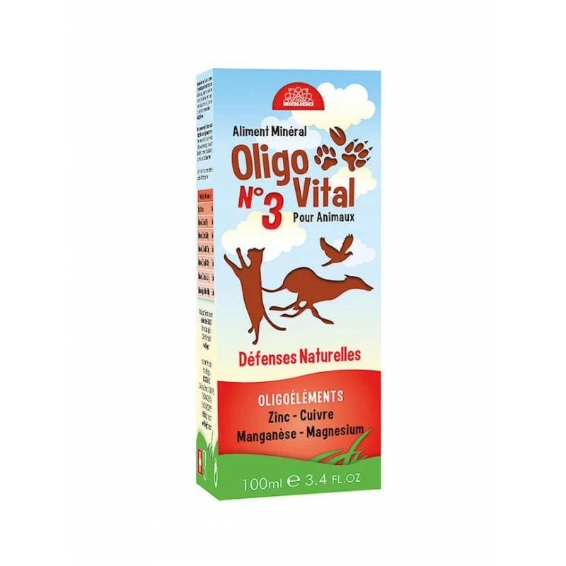 Oligo Vital N°3 est un produit sous forme liquide ionisée qui fournit un apport de minéraux indispensables à l’équilibre de la ration alimentaire. Il contient des oligoéléments aux propriétés énergisantes directement assimilables qui combattent le manque de force et les refroidissements. L’organisme est ainsi stimulé et renforcé pour lutter contre les états de faiblesse des défenses naturelles de votre compagnon.