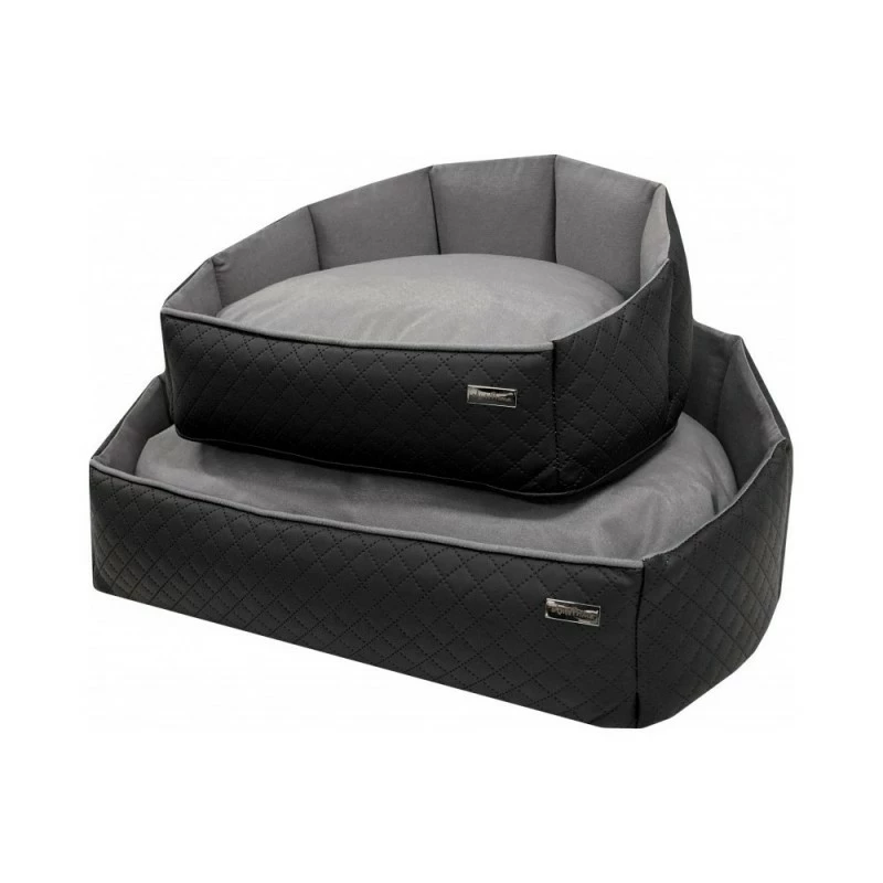 Sa structure mi-ovale est composĂ©e d’un bel extĂ©rieur en cuir noir classique et d’un intĂ©rieur en tissu coton gris rĂ©sistant. IdĂ©al pour adopter une position naturelle lors de la phase d’endormissement, ce panier de luxe est dotĂ© de deux accessoires amovibles : un matelas doux et fin qui protège le panier et un coussin souple et rembourrĂ© en peluche pour plus de douceur. Medusa est entièrement dĂ©houssable et lavable Ă la main Ă 30°C.